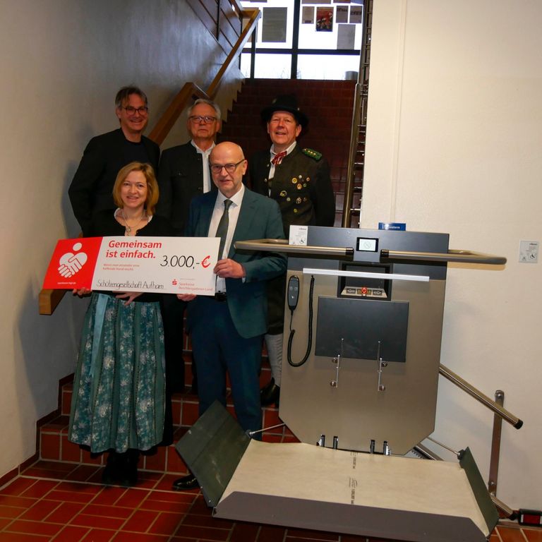 Die Sparkassen-Bürgerstiftung Berchtesgadener Land hat der Schützengesellschaft Aufham e. V. eine Spende von 3.000 Euro überreicht. Mit der Förderung wurde ein Plattform-Treppenlift angeschafft, der einen barrierefreien Zugang zum Schießstand in der Sporthalle ermöglicht. Dies ist besonders für Mitglieder und Gäste mit körperlichen Einschränkungen von großer Bedeutung, um auch ihnen die aktive Teilnahme am Vereinsleben und an den sportlichen Aktivitäten zu ermöglichen.