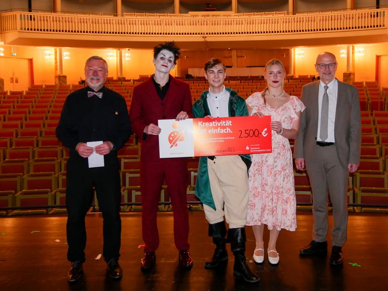 Die Sparkassen-Bürgerstiftung Berchtesgadener Land hat das Theaterprojekt „Faust & Co.“ des Karlsgymnasiums Bad Reichenhall mit einer großzügigen Spende von 2.500 Euro unterstützt. Das Schultheater feierte mit dieser Hilfe unter der Regie von StD Helmut Russegger am 20. und 21. März im ausverkauften Kurgastzentrum zwei bewegende Abende und würdigte 34 Jahre leidenschaftliche Theaterarbeit.