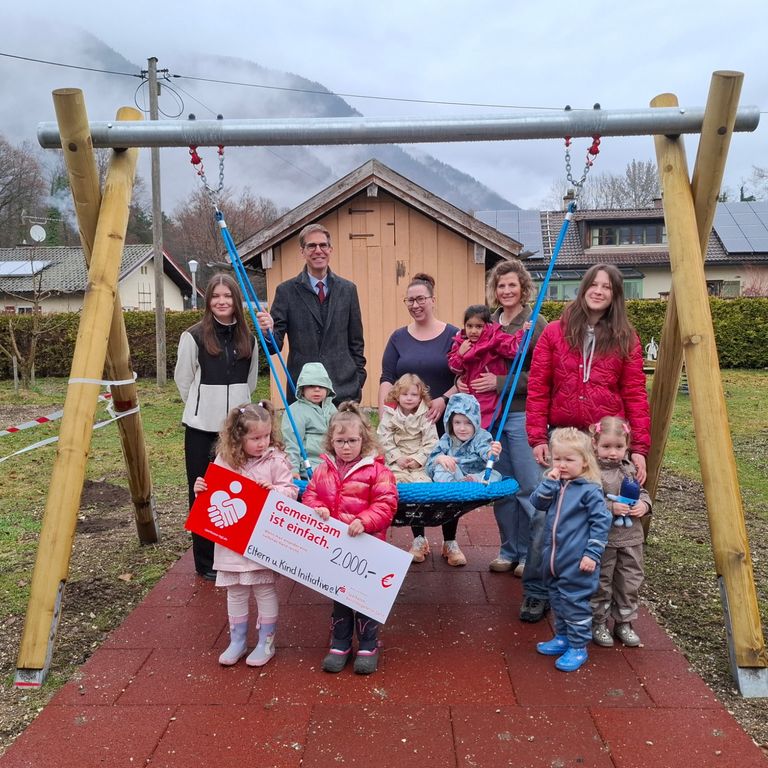 Der Verein „Eltern und Kind Initiative e. V.“ ist Träger eines besonderen Kindergartens, den „Kinderladen Bad Reichenhall“, welchen die Eltern aktiv mitgestalten können. Durch die Mitarbeit der Eltern erhalten diese einen Einblick in das Verhalten des eigenen Kindes im sozialen Gefüge. Im Jahr 2024 hat sich eine neue Vorstandschaft für den Trägerverein gefunden, die mit viel Engagement den „Kinderladen“ weiterhin betreiben und neugestalten. Ein besonderer Wunsch war die Anschaffung von diversen Spielgeräten, wie Schaukeln, Sandspielzeug und vieles mehr. Stiftungsvorstand Alexander Gehrig überreichte einen Spendenscheck über 2.000 Euro im Namen der Sparkassen-Bürgerstiftung BGL und freute sich über die leuchtenden Augen der Kinder, welche die Schaukeln bereits ausgiebig getestet haben.